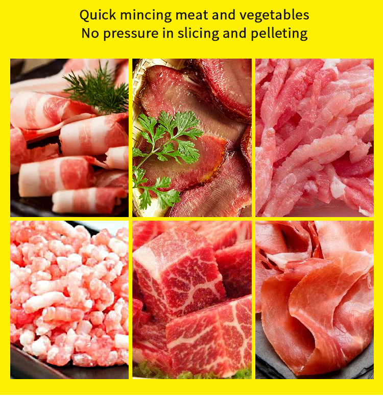 RSP-500 shredded meat slices are a primary molding machine it is our company to comply with the market demand and carefully designed, manufactured meat processing machinery.The machine is available accordingly Household needs,processing all kinds of meat slices, shredded meat and other ingredients.This machine cut meat slice thickness is uniform, clear cut meat strips, multi-specification cut meat silk selection, removable type knife group,the product exterior is round and beautiful, stable and efficient performance, simple and practical operation,and more in line with the national food safety and hygiene requirements, a wide range of applications,Is the hotel, restaurants, restaurants, unit canteen, meat processing enterprises and market merchants.